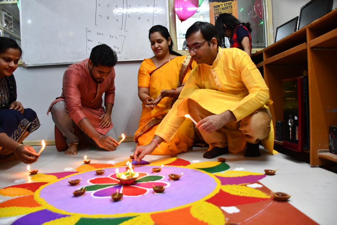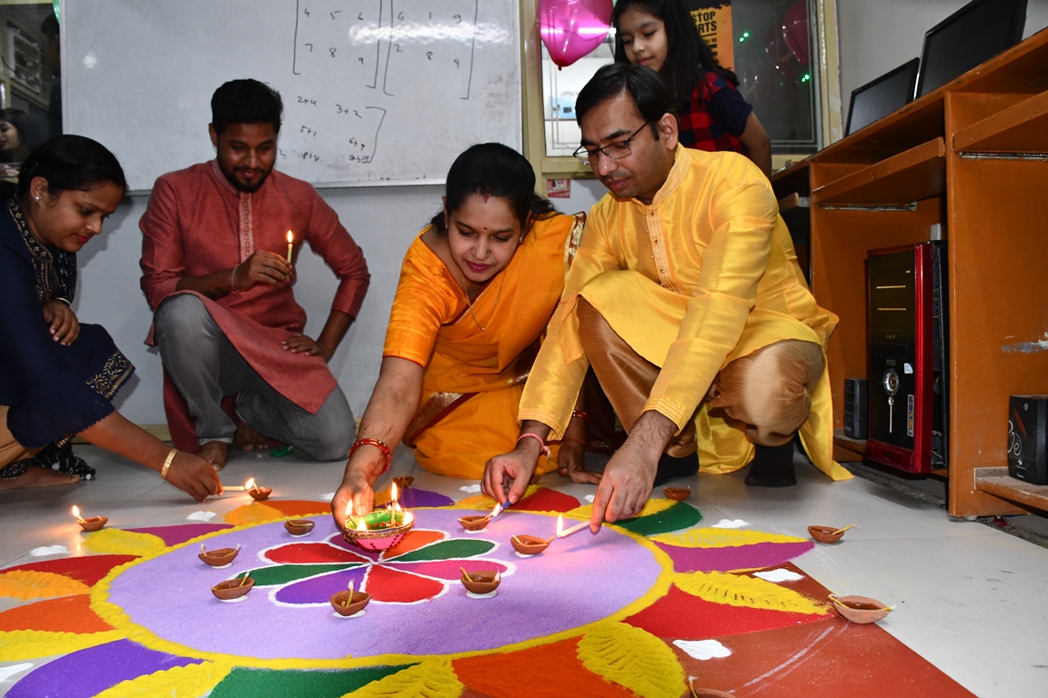 "दीपावली की पूर्व संध्या पर पाठशाला के छात्रो एवं छात्राओ ने दीपों और मोबात्तियों की लड़ीयों के साथ-साथ ही सुंदर रंगोली से संस्था को सजाया । उत्सव का आरंभ संस्था के निदेशक श्री धीरेंद्र प्रताप सिंह एवं समन्वयक श्रीमती इन्दु गुप्ता ने लक्ष्मी-गणेश वंदना, शिक्षिको एवं छात्रों के साथ किया । संस्था की अग्रणी छात्राओ अॅन्जलि यादव, साक्षी चौरसिया, मंजरी, प्रियंका सिंह और पूजा ने सुन्दरं रंगोली बनायी, जिसमे छात्रा अॅन्जलि यादव और साक्षी चौरसिया का योगदान उत्तम रहा । शिक्षक प्रवीन सिंह, शिशिर कुमार, सतीश और प्रीती मैडम ने छात्रो संदीप यादव, शकीब अंसारी, गौरव पटेल के साथ दीपों और मोबात्तियों से पाठशाला को जगमग कर दिया, साथ ही सहयोगी महेश कुमार पाल भी कार्य मे सहयोग प्रदान किया । दीपोत्सव के पश्चात, अंजली यादव और प्रियंका सिंह ने गुब्बारे कि प्रतियोगिता आयोजित की , जिसमे सभी विद्यार्थी विशाल, रंविजय, प्रियांशु, सक्षम, शक्ति, रुचि, सौरभ, आकाश, मयंक, गौरव, शिखा, प्रियंशी, स्नेहलता, साक्षी, अन्मय, पूजा, शकिब, गौरव, संदीप और सभी शिक्षक सम्मलित होकर आंनद लिये, "